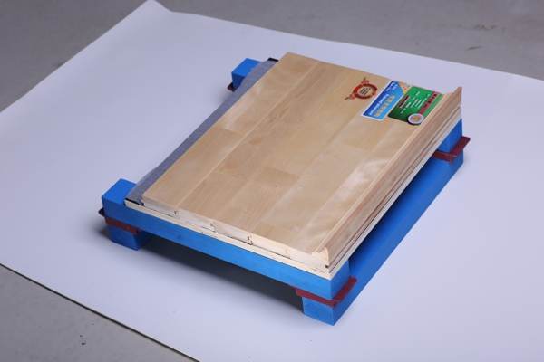 2.首先讓混凝土地板的踢腳板穩(wěn)定一下。因?yàn)轶w育館木地板的擴(kuò)張緣故,有必要在周邊地區(qū)留出空隙,在場(chǎng)館周圍留下5毫米左右的空地。然后用復(fù)合地板的底板釘子墻覆蓋間隙。